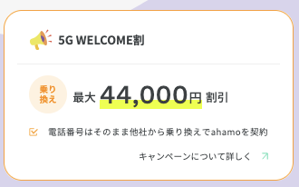 MNP乗り換えなら5G WELCOME割で月々1円から