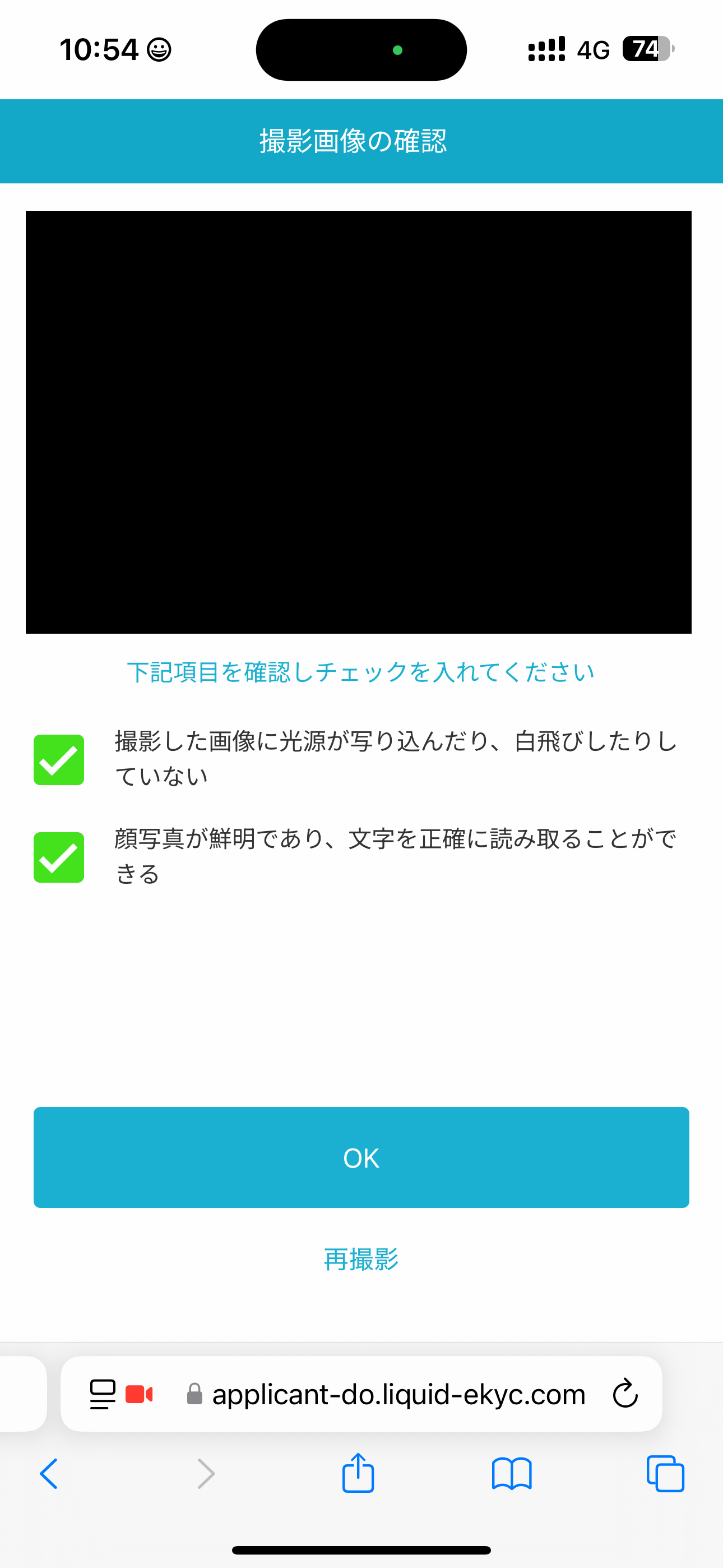 手や指で本人確認書類の一部の内容が隠れて見えない場合は、再撮影ボタンをタップします。