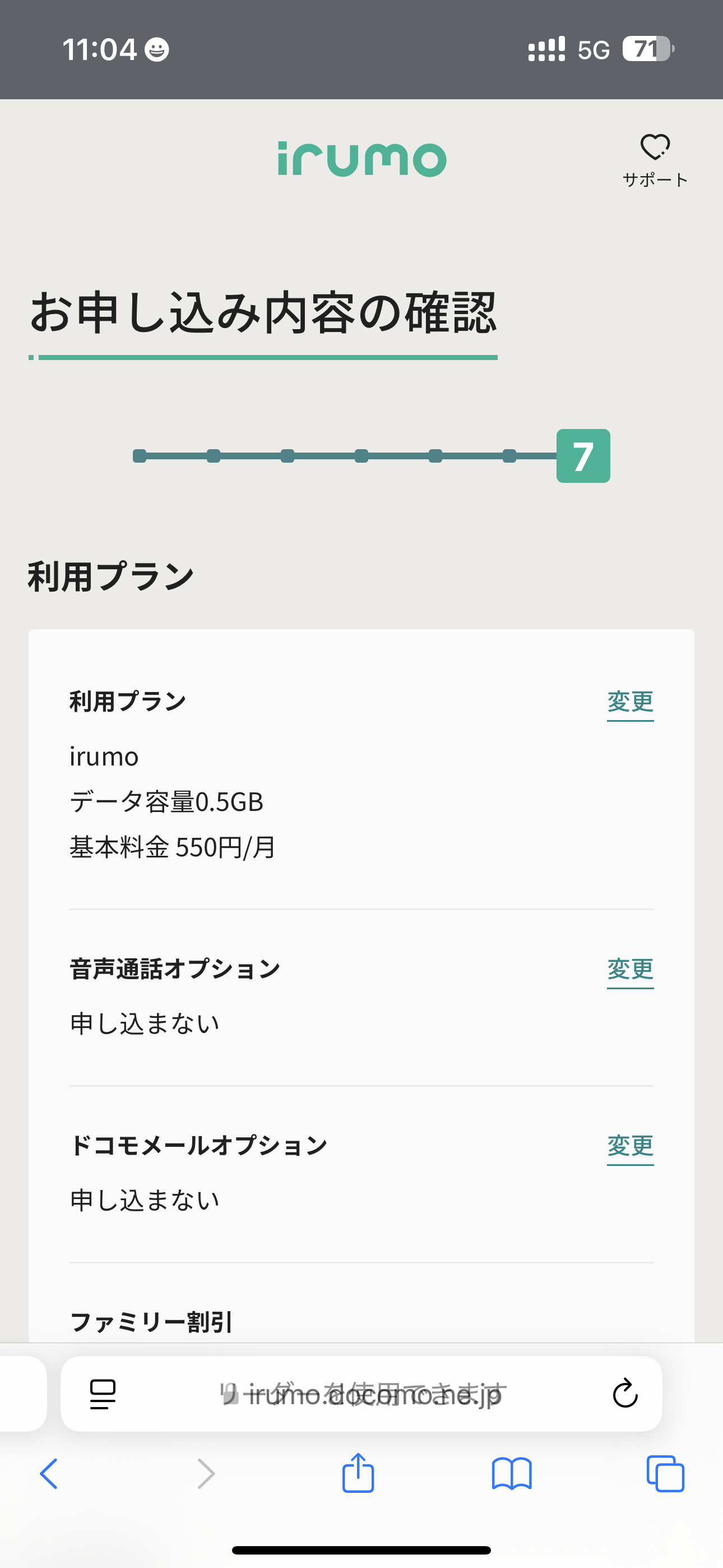 注文を確定するボタンをタップすると、irumoの契約手続きが完了します。