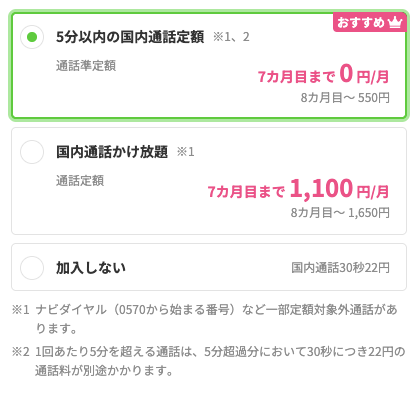 契約後に後から通話オプション申し込む場合も、オプションに加入した月はオプション代金が日割り計算されるので無駄になりません。