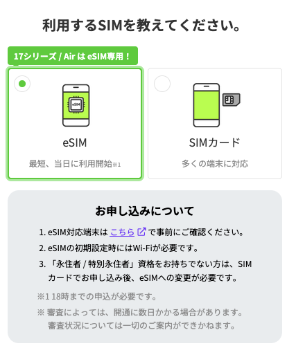 eSIMの場合は月の残り日数3日以上がおすすめ