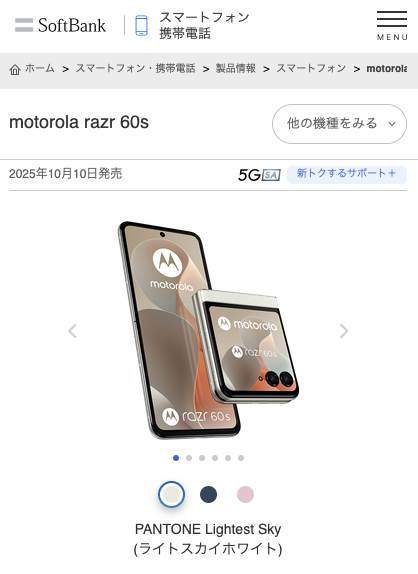 縦折りスマホrazrシリーズの最新モデルとして、モトローラ razr 60が2025年10月10日に発売されました。