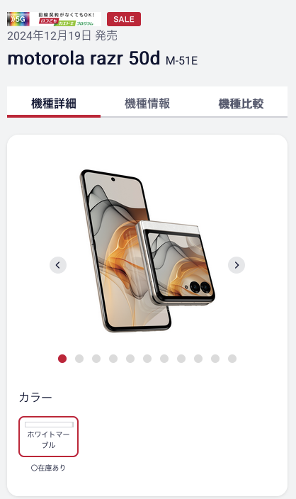 モトローラ razr 60はSIMフリー版の販売のほかに、キャリア独自仕様モデルが用意されています。