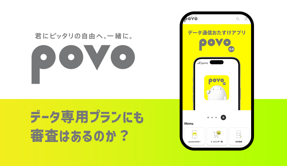 povoのデータ専用プランも通話+データプランも、スマホ端末の分割販売がないので支払い(返済)能力の審査は行われない。