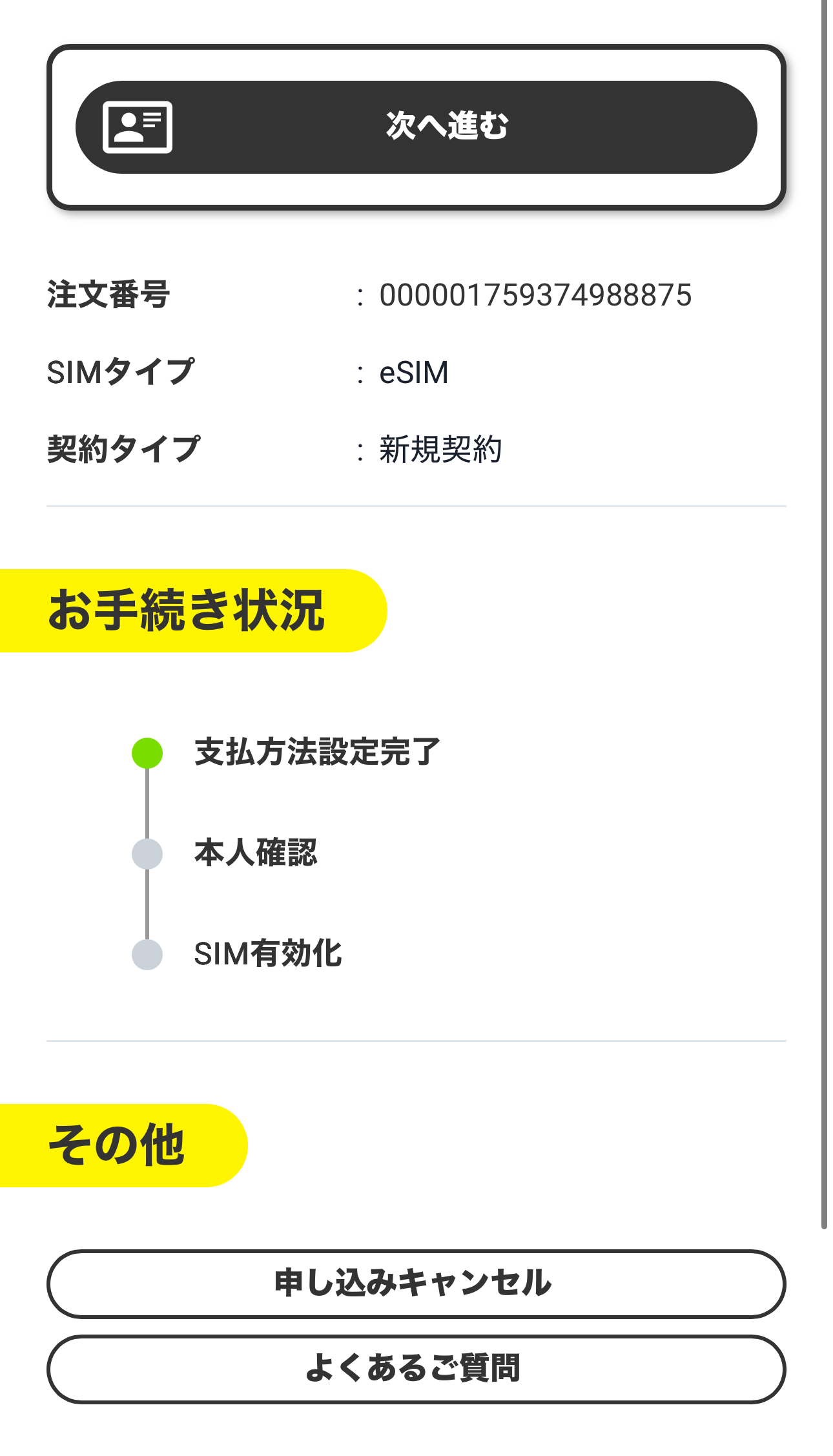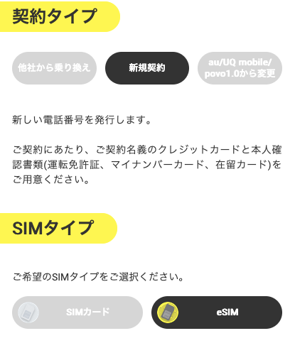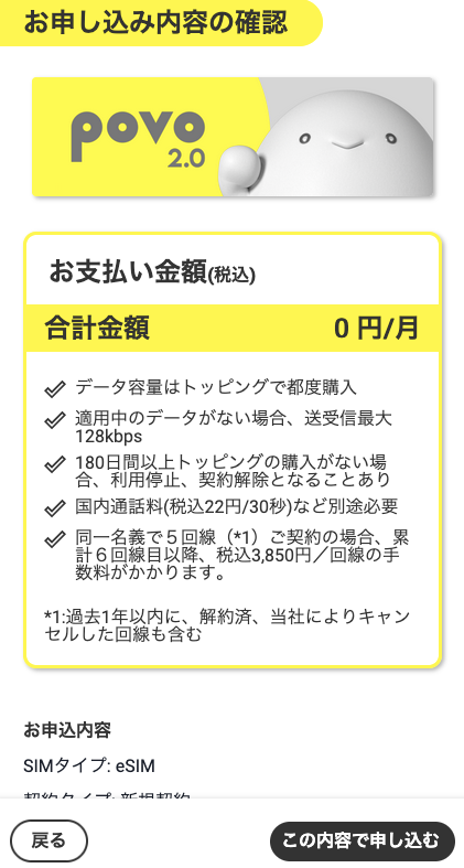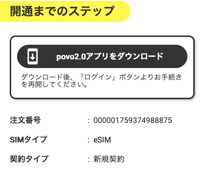 2度目のpovo申込の場合も1度目と全く同じ手順
