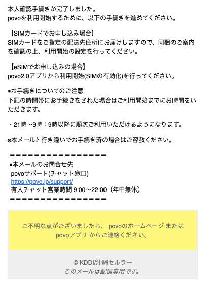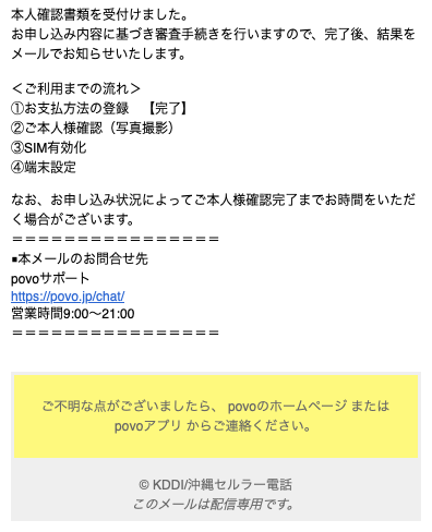 povo運営による本人確認が行われ、本人確認が完了したら案内メールが届きます。