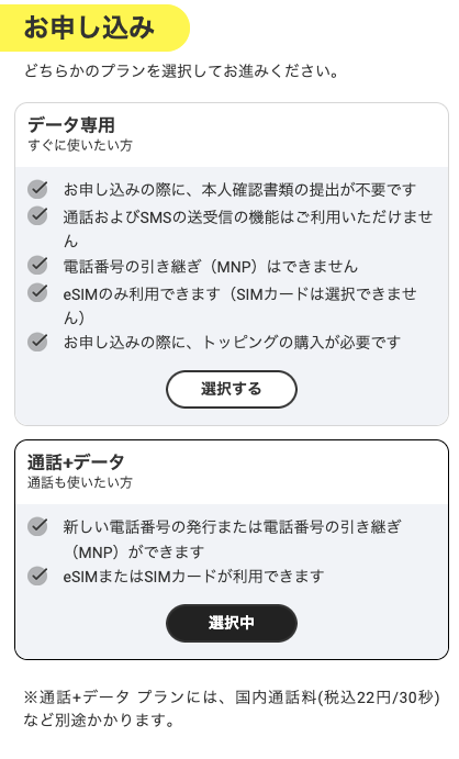 eSIMのダウンロード案内メールまたはSIMカードが配送で届きます。