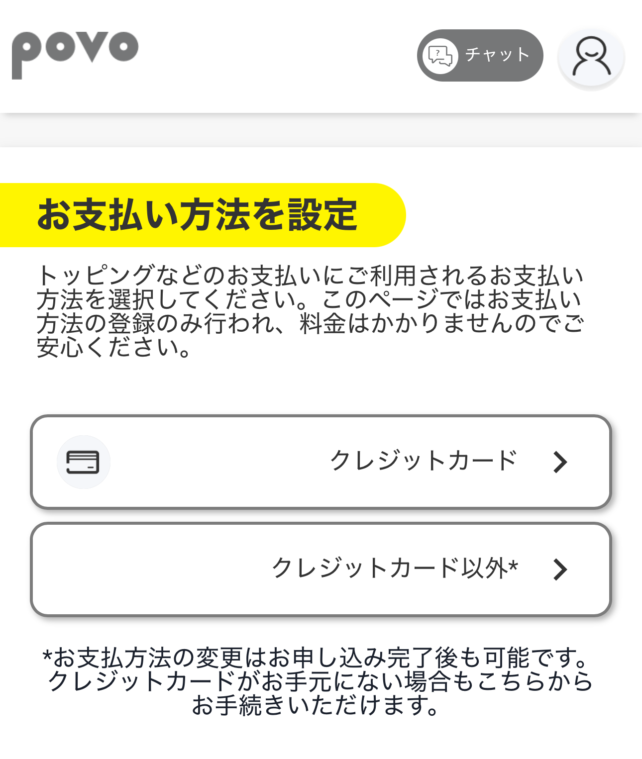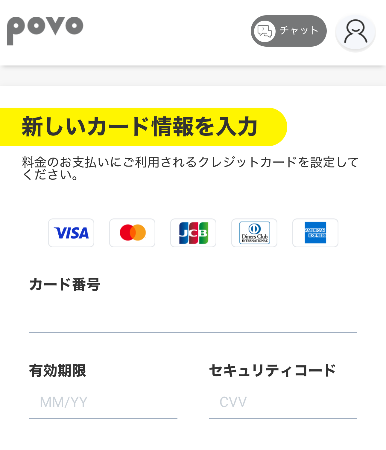 povoの支払い方法にはクレジットカードまたはPaidyが利用できます。