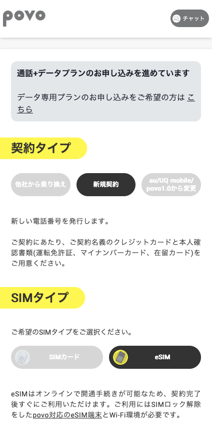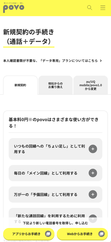 2回線目以降の申し込みもpovo公式サイトの申し込みボタンから手続きを進めます。