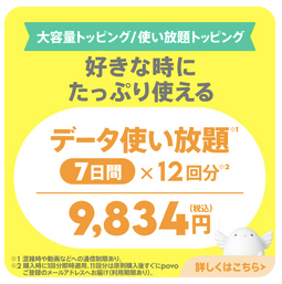 povoには、上記の他にも多くの種類のデータトッピングがあります。