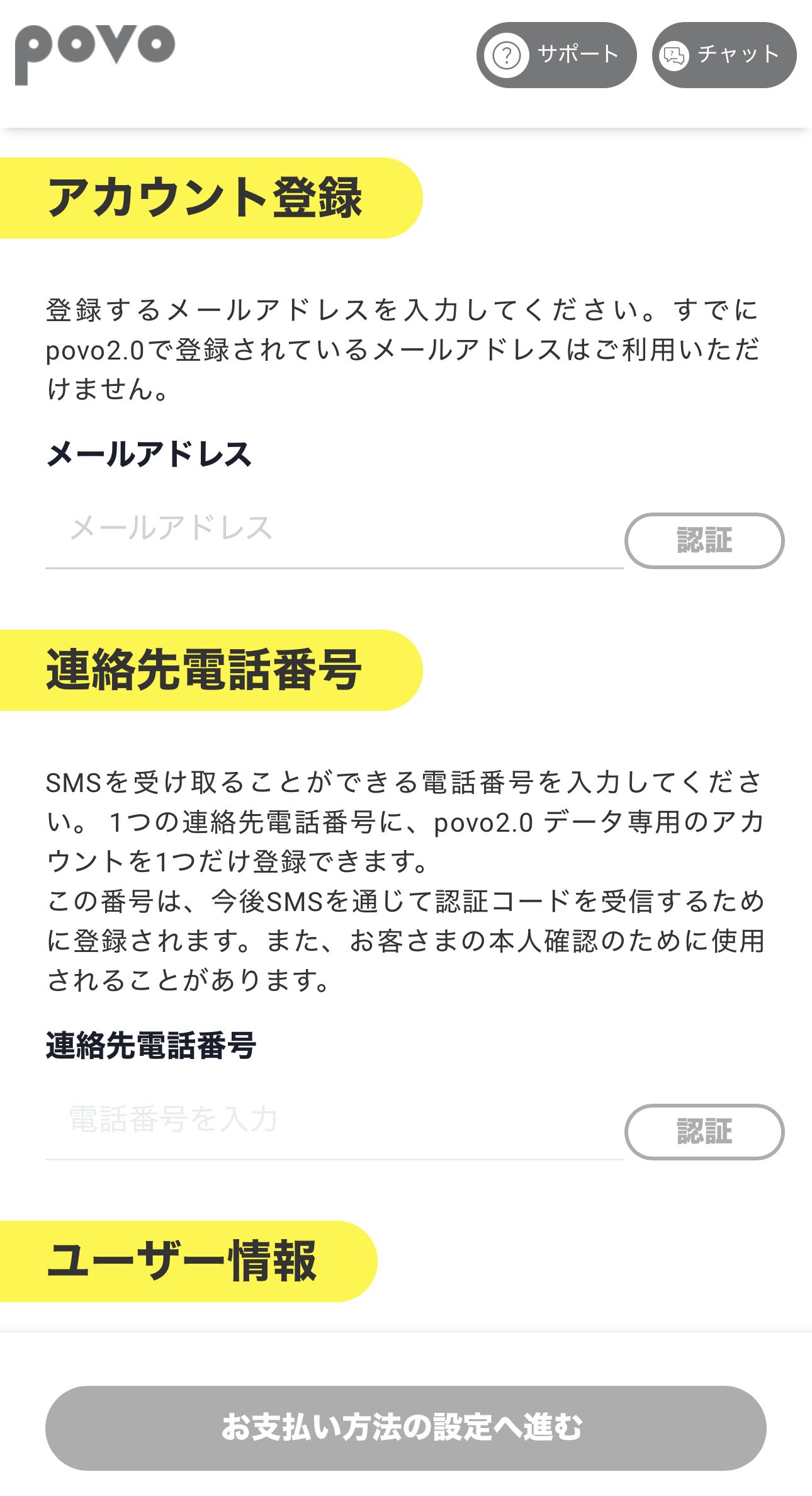 1つの連絡先電話番号に対して、2つ以上のpovoデータ専用プランのアカウントを登録することはできません。