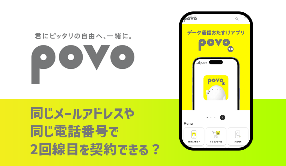 povoのデータ専用プランは同じ連絡先電話番号で複数回線契約できない。通話+データプランは重複していてもOK。