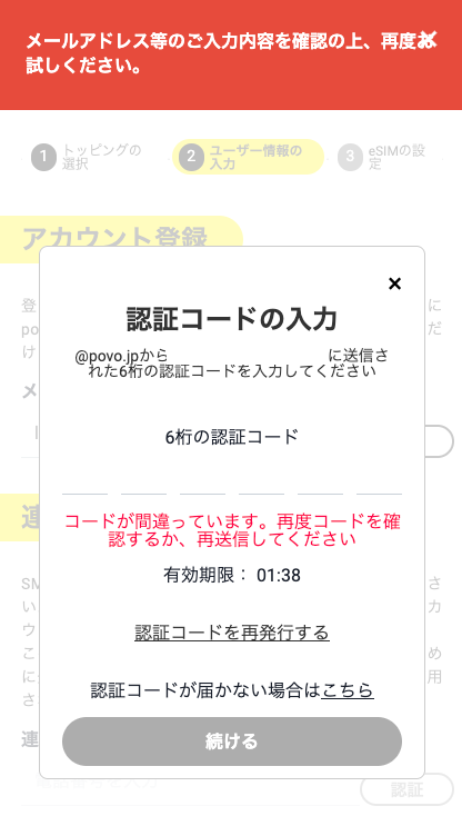 実験:同じメールアドレスで2回線目のpovoアカウント登録はできない
