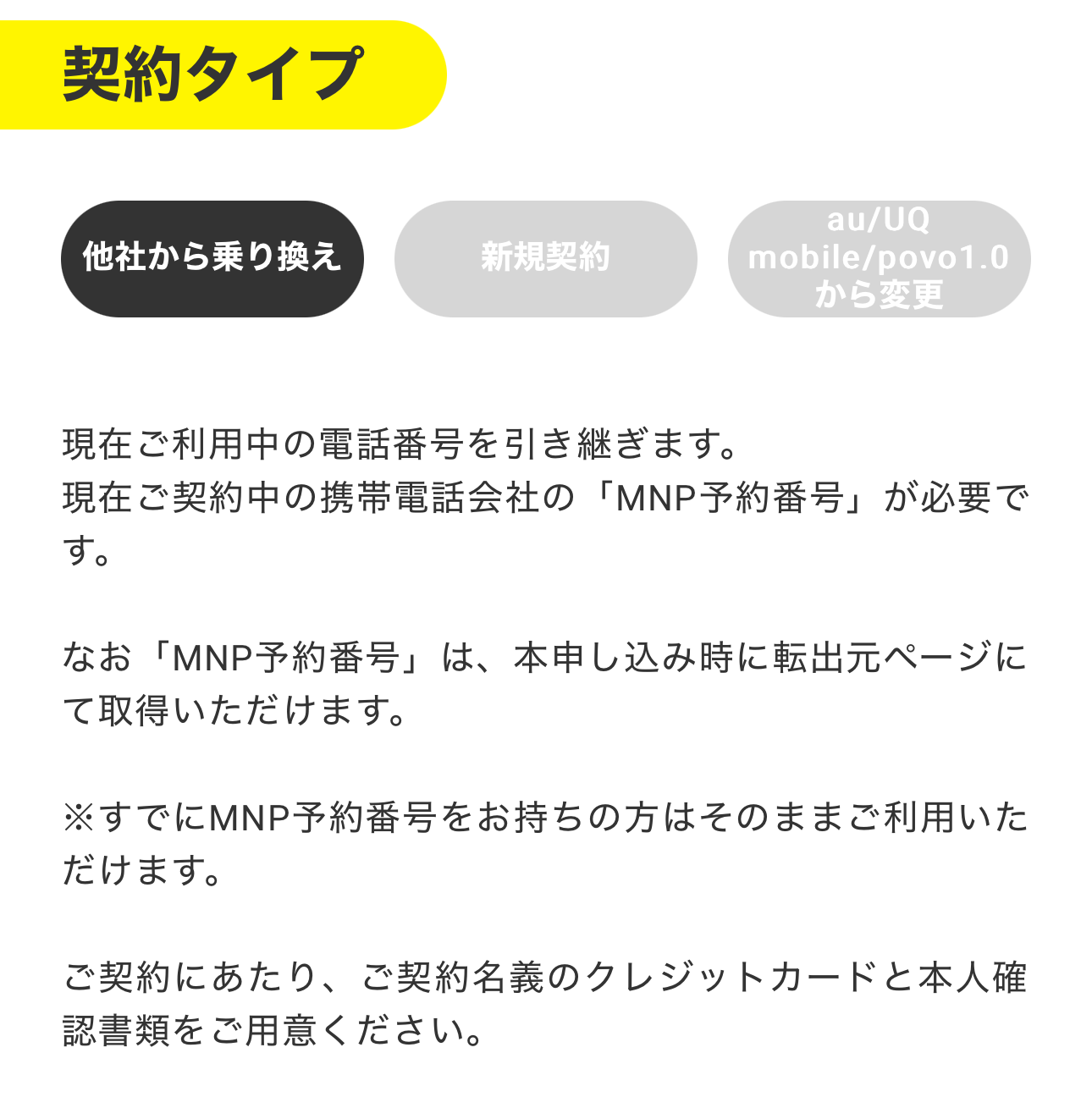 MNP予約番号を事前に取得せずに他社からpovoへのMNP乗り換えを選択して手続きを進めると、MNP予約番号が自動で発行される仕組みが採用されています。(MNPワンストップ制度)
