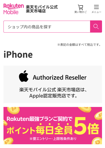 楽天モバイルは公式サイト以外にも、スマートフォンをお得に購入できる楽天市場店を出店しています。