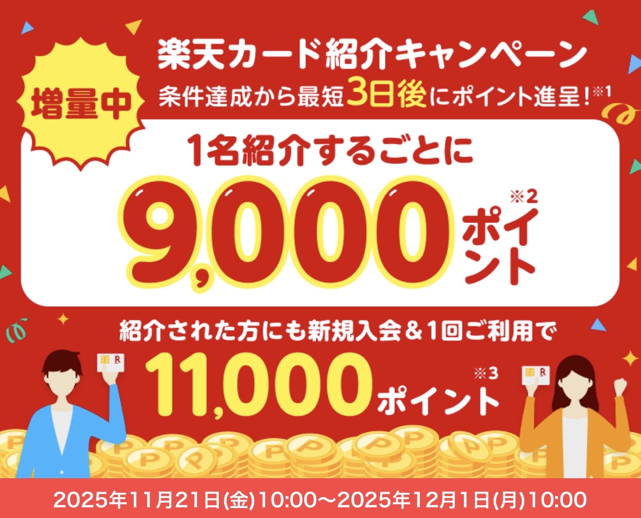 2025年12月1日までの期間は楽天カード紹介キャンペーンを開催中