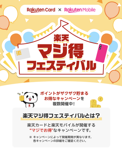 楽天マジ得フェスティバルは1年に3-4回程度の間隔で不定期開催されている楽天カード保有者限定の楽天モバイル申込キャンペーンです。