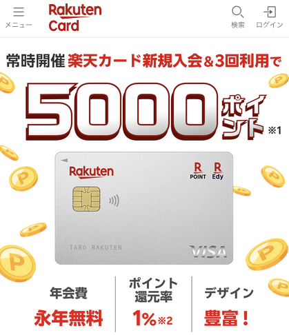 通常期の楽天カード入会特典は5,000ポイントなので、楽天モバイルユーザーが楽天カードに入会するなら楽天マジ得フェスティバルの開催期間中がチャンスです。
