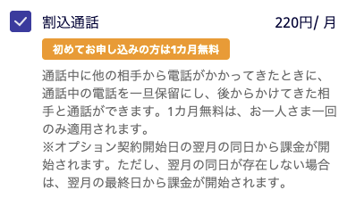 このオプションに加入した状態でも、15分を超えた標準電話アプリを使用した通話には、22円/30秒の通話料がかかります。
