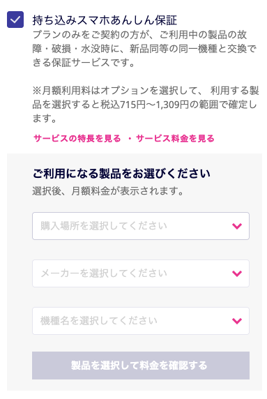 持ち込みスマホあんしん保証(月額715-1,309円)