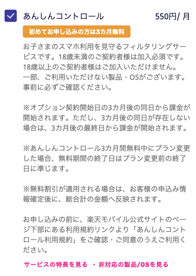 楽天モバイルのオンライン申込画面に表示される数々のオプションは必要なのか。最小限の料金で契約したい。
