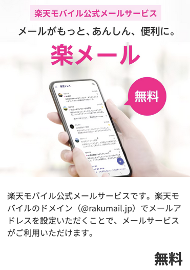 楽天モバイルには、契約者全員が無料で使える独自のメールサービス「楽メール」があります。