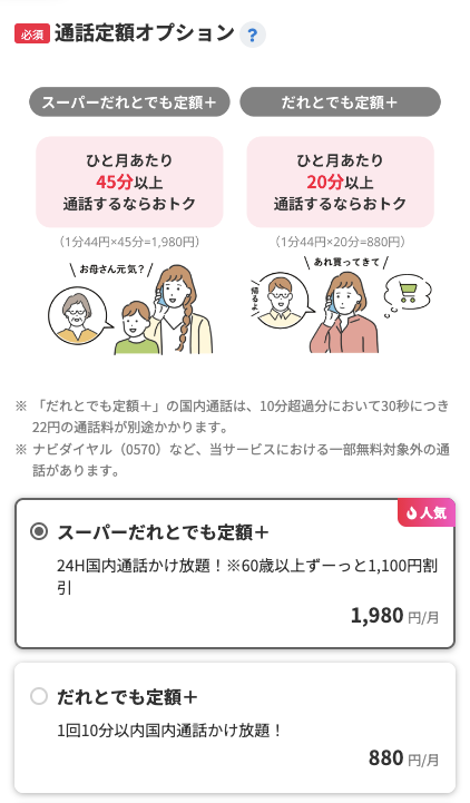 契約後に後から通話定額オプションに申し込む場合、日割り計算はされずにオプションの適用が翌月1日からとなります。