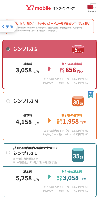 | シンプル3 S | 858円-3,058円/月 |