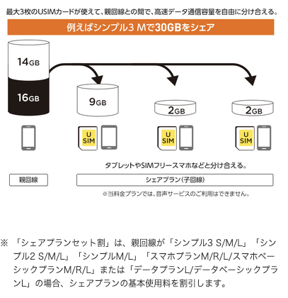月間データ容量が5GBしかないシンプル3 Sの状態でシェアプランに加入してもギガ不足になりやすいです。