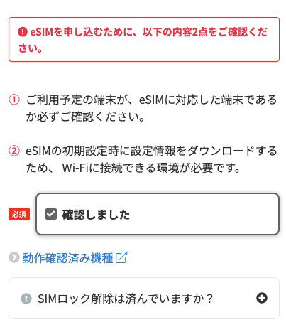 - eSIMを選べば申し込み完了後すぐにモバイル回線を開通させられる